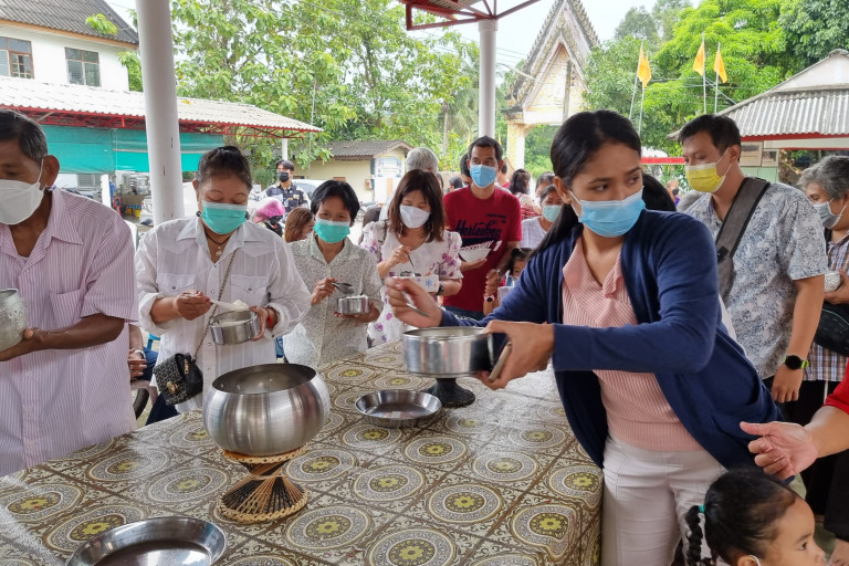 วันนี้ ( 11 ก.ย.65) เวลา 10.00 น. ที่วัดสวนใหม่ ม.3 ต.สะเตงนอก อ.เมือง จ.ยะลา บรรยากาศในวันทำบุญเดือนสิบ หรือที่ชาวบ้านเรียกว่า วันรับตายาย ซึ่งเป็นบุญแรกในประเพณีวันสารทเดือนสิบของพี่น้องประชาชนในพื้นที่จังหวัดยะลา ปีนี้มีประชาชนไปร่วมทำบุญกันจำนวนมาก พร้อม นำอาหารคาวหวาน ผลไม้ ขนมเดือนสิบ อาทิ ขนมลา ขนมต้ม ขนมเทียน ข้าวพอง หมากพู เป็นต้น ซึ่งปีนี้ สิ่งของมีราคาแพงกว่า ทุกๆปี ที่ผ่านมา เนื่องจากปัญหาเศรษฐกิจ ทำให้ชาวบ้านซื้อของน้อยลง ตามประเพณีสารทเดือนสิบ เพื่ออุทิศส่วนบุญส่วนกุศลให้บรรพบุรุษที่ล่วงลับไปแล้ว พร้อมทั้งนำอาหาร ขนม น้ำดื่ม ไปวางไว้ตามหน้าวัด สำหรับให้กับคนตายที่ไม่มีญาติ ส่วนที่วางไว้บนร้านเปรต ก็จะให้กับปู่ย่าตายายที่ล่วงลับไปแล้ว และมีญาติพี่น้องคอยทำบุญให้อยู่ หลังเสร็จสิ้นพิธีทำบุญ รับศีล ฟังธรรม ก็จะมีการชิงเปรต เด็กๆ ก็จะได้เข้าไปหยิบของที่ร้านเปรตและชิงกันอย่างสนุกสนาน