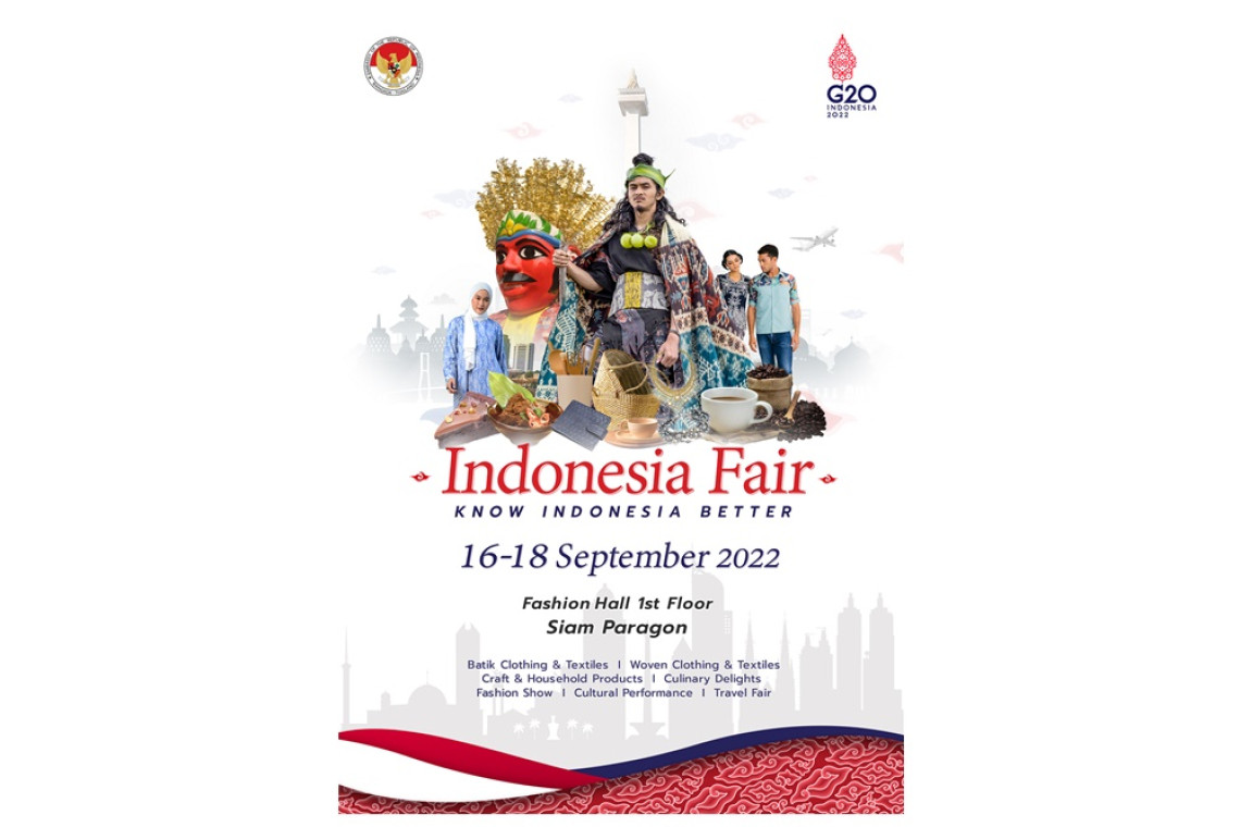 สถานเอกอัครราชทูตสาธารณรัฐอินโดนีเซียประจำประเทศไทย ณ กรุงเทพฯ ร่วมกับ บริษัท สยามพิวรรธน์ จำกัด ผู้พัฒนาอสังหาริมทรัพย์และธุรกิจค้าปลีกชั้นนำ เจ้าของและผู้บริหารโครงการที่มีชื่อเสียงระดับโลก อาทิ สยามพารากอน สยามเซ็นเตอร์ สยามดิสคัฟเวอรี่ หนึ่งในพันธมิตรเจ้าของไอคอนสยาม และสยาม พรีเมี่ยม เอาท์เล็ต กรุงเทพ จัดงาน “Know Indonesia Better – Indonesian Fair” หรือ งานอินโดนีเซีย แฟร์ ที่จัดขึ้นภายใต้ธีมหลัก คือ Know Indonesia Better เป็นส่วนหนึ่งของงาน Indonesia Trade, Tourism, Investment and Culture Forum (TTICF) ที่จัดขึ้นเพื่อให้คนไทยและนานาชาติได้ร่วมร่วมสัมผัสความงดงามของประเทศอินโดนีเซียในหลากหลายแง่มุม ผ่านมิติการค้า และการพาณิชย์, การท่องเที่ยว, การลงทุน รวมถึงศิลปะวัฒนธรรมอันเป็นเอกลักษณ์ โดยงาน “Indonesian Fair” จะจัดขึ้นในวันที่ 16-18 กันยายน 2565 ที่แฟชั่น ฮอลล์ ชั้น 1 สยามพารากอน