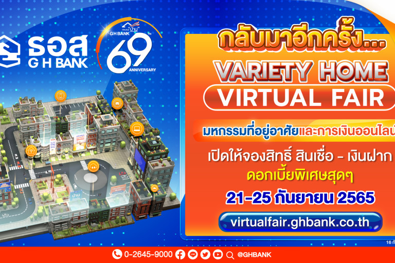 นายฉัตรชัย ศิริไล กรรมการผู้จัดการ ธนาคารอาคารสงเคราะห์ (ธอส.) เปิดเผยว่า เพื่อเป็นการฉลองครบรอบการดำเนินงาน 69 ปี ธอส. ในวันที่ 24 กันยายน 2565 และขอบคุณลูกค้าประชาชนที่ไว้วางใจให้ ธอส. สานฝันให้คนไทยได้มีบ้านเป็นของตนเองมาแล้วมากกว่า 4 ล้านครอบครัว ธนาคารจึงได้จัดงาน Variety Home Virtual Fair : มหกรรมที่อยู่อาศัยและการเงินออนไลน์จาก ธอส. ครั้งที่ 2 โดยนำโปรโมชั่นพิเศษสุด