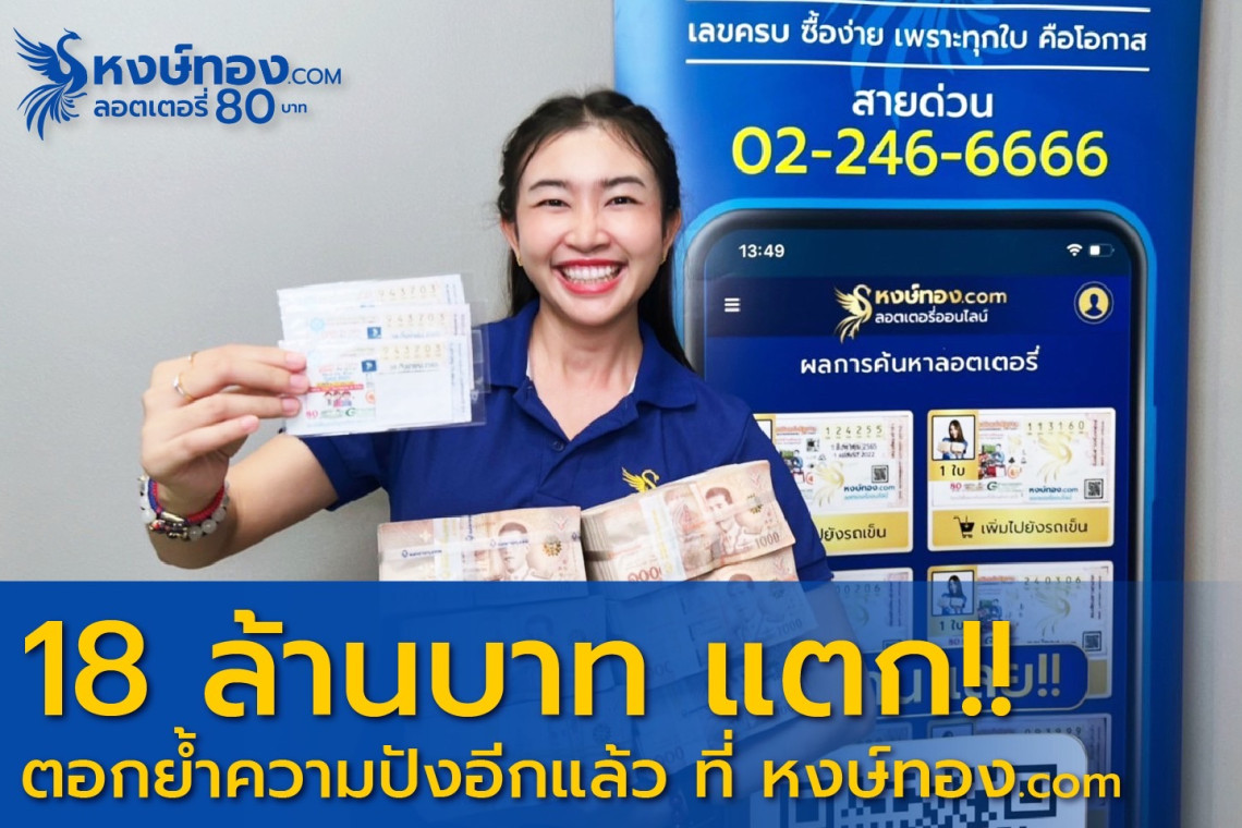 เติมความขลัง! ตอกย้ำความปัง! ผู้โชคดี คุณชาญชัย ถูกรางวัลที่ 1 จำนวน 2 ใบ กับหงษ์ทอง.COM มูลค่า 12 ล้านบาท และคุณยุพา ถูกรางวัลที่ 1 จำนวน 1 ใบ มูลค่า 6 ล้านบาท งวดนี้วันที่ 16 กันยายน 2565 ทั้งสิ้นรางวัลที่ 1 จำนวน 3 ใบ มูลค่า 18 ล้านบาท อีกทั้งรวมผู้โชคดีถูกรางวัลกว่า 100 ล้านบาทที่หงส์ทอง.COM
