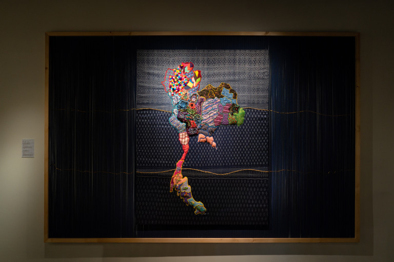 ปัก : ถัก : ทอ (Woven Dialects) สะท้อนแนวคิด “ความเป็นอันหนึ่งอันเดียวกันของประเทศไทย” โดยยังคงเอกลักษณ์ท้องถิ่นไว้ ด้วยการนำผ้าท้องถิ่นที่มีชื่อเสียงในแต่ละภูมิภาคจากมูลนิธิส่งเสริมศิลปาชีพฯ มาเล่าผ่านแผนที่ประเทศไทย Textile Cartograph of Thailand ซึ่งทำจากเทคนิค Appliqué โดย คุณเพลินจันทร์ วิญญรัตน์ (ศิลปินและนักออกแบบสิ่งทอ) ถ่ายทอดเรื่องราวผ่านภัณฑารักษ์มากประสบการณ์คือ คุณณชนก วงศ์ข้าหลวง และเจ้าหน้าที่การศึกษา คุณธัญลักษณ์ ตึกดี จัดแสดงอุปกรณ์และวิดีโอขั้นตอนการทอผ้าแต่ละประเภท ได้แก่ ผ้าขิด ผ้าจก ผ้ายก ผ้าฝ้าย ผ้าแพรวา ผ้าชาวไทยภูเขา ผ้ามัดหมี่ ผ้าปักซอยแบบไทย และผ้าบาติก เพื่อสร้างแรงบันดาลใจในการอนุรักษ์มรดกทางวัฒนธรรมอันทรงคุณค่า และเพื่อสืบสานพระราชปณิธานของสมเด็จพระบรมราชชนนีพันปีหลวง พร้อมเปิดโอกาสให้ผู้เข้าชมถ่ายภาพเป็นที่ระลึก และมีส่วนร่วมกับตัวอย่างผ้า อุปกรณ์การทอผ้า รวมไปถึงกิจกรรมต่างๆ ภายในห้อง เช่น ตราประทับลายผ้าอัตลักษณ์ประจำจังหวัดได้อีกด้วย