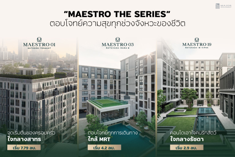 เมเจอร์ฯ คัด 3 โครงการ คอนโดพร้อมอยู่ เข้าร่วมแคมเปญ “MAESTRO THE SERIES”ได้แก่