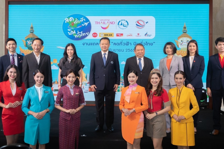 สำหรับการเดินทางทางอากาศทั่วทุกภูมิภาคในประเทศไทยในช่วงฤดูกาลท่องเที่ยวที่กำลังจะมาถึงนี้การท่องเที่ยวแห่งประเทศไทย (ททท.) ร่วมกับสมาคมสายการบินประเทศไทย ซึ่งประกอบไปด้วย 6 สายการบิน ได้แก่ บางกอกแอร์เวย์ส ไทยแอร์เอเชีย ไทยสมายล์ นกแอร์ ไทยไลอ้อนแอร์ และไทยเวียตเจ็ท เปิดตัวโครงการลดทั่วฟ้า บินทั่วไทย มอบส่วนลดพิเศษบัตรโดยสาร 300 บาท ทุกหมายเลขการจอง ให้แก่ผู้โดยสารสายการบิน เป็นการกระตุ้นเศรษฐกิจ
