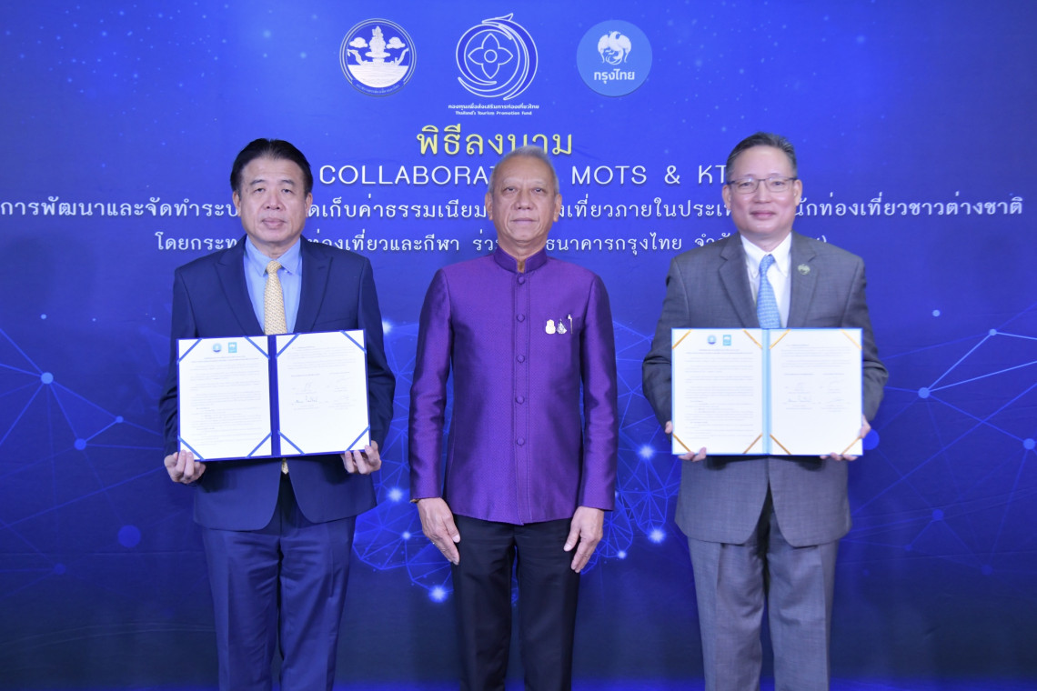 นอกจากนี้ สำนักงานปลัดกระทรวงการท่องเที่ยวและกีฬา ได้ร่วมลงนามบันทึกความเข้าใจ หรือ MOU กับธนาคารกรุงไทย ซึ่งเป็นสถาบันการเงินขนาดใหญ่ มีระบบรองรับการชำระเงินของภาครัฐที่มีประสิทธิภาพ ในการเชื่อมโยงระบบบริการชำระเงินของธนาคารเข้ากับระบบการจัดเก็บค่าธรรมเนียมการท่องเที่ยวภายในประเทศของนักท่องเที่ยวต่างชาติของสำนักงานปลัดกระทรวงการท่องเที่ยวและกีฬา เพื่อนักท่องเที่ยวชาวต่างชาติผู้ชำระค่าธรรมเนียมจะได้รับความสะดวกสบาย รวดเร็ว และมั่นใจได้ว่าเงินค่าธรรมเนียมจะได้รับการดูแลอย่างเหมาะสม เพื่อนำไปใช้จ่ายตามวัตถุประสงค์ต่อไป