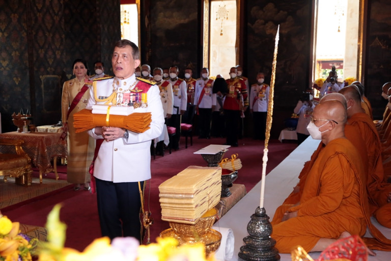 เมื่อเสด็จพระราชดำเนินถึงวัดบวรนิเวศวิหาร เสด็จเข้าพระอุโบสถ พระบาทสมเด็จพระเจ้าอยู่หัว ทรงวางผ้าไตรเหนือพานแว่นฟ้าหน้าอาสน์สงฆ์ ทรงจุดธูปเทียนเครื่องนมัสการบูชาพระพุทธชินสีห์ พระประธานพระอุโบสถ แล้วทรงจุดธูปเทียนเครื่องทองน้อยถวายราชสักการะพระบรมราชสรีรางคาร พระบาทสมเด็จพระมงกุฎเกล้าเจ้าอยู่หัว และพระบรมราชสรีรางคาร พระบาทสมเด็จพระบรมชนกาธิเบศร มหาภูมิพลอดุลยเดชมหาราช บรมนาถบพิตร ทรงกราบ แล้วทรงหยิบผ้าห่มสำหรับพระประธาน พระราชทานเจ้าพนักงานภูษามาลา จากนั้น เจ้าหน้าที่กรมการศาสนากราบบังคมทูลรายงานจำนวนพระสงฆ์