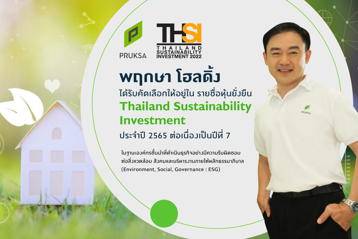 สำหรับรายชื่อหุ้นยั่งยืน หรือ Thailand Sustainability Investment (THSI) เป็นรายชื่อของบริษัทจดทะเบียนที่ดำเนินธุรกิจอย่างยั่งยืนโดยคำนึงถึงสิ่งแวดล้อม สังคม และธรรมาภิบาล จัดทำโดยตลาดหลักทรัพย์แห่งประเทศไทย THSI โดยมีคณะทำงานเพื่อการลงทุนอย่างยั่งยืน ซึ่งประกอบด้วยผู้ทรงคุณวุฒิในภาคตลาดทุน เป็นผู้กลั่นกรองให้มีความโปร่งใสตลอดกระบวนการ โดยคัดเลือกจากองค์กรที่สมัครใจเข้าร่วมตอบแบบประเมินความยั่งยืน เพื่อให้เป็นอีกหนึ่งทางเลือกสำหรับผู้ลงทุนที่ต้องการลงทุนตามแนวคิดการลงทุนอย่างยั่งยืน ที่นำปัจจัยด้าน ESG มาประกอบการตัดสินใจลงทุนควบคู่ไปกับการวิเคราะห์ข้อมูลทางการเงินของบริษัทเพื่อสร้างผลตอบแทนอย่างต่อเนื่องในระยะยาว ศึกษารายละเอียดโครงการเพื่อสังคมและสิ่งแวดล้อมของพฤกษาเพิ่มเติมได้ที่ www.pruksa.com