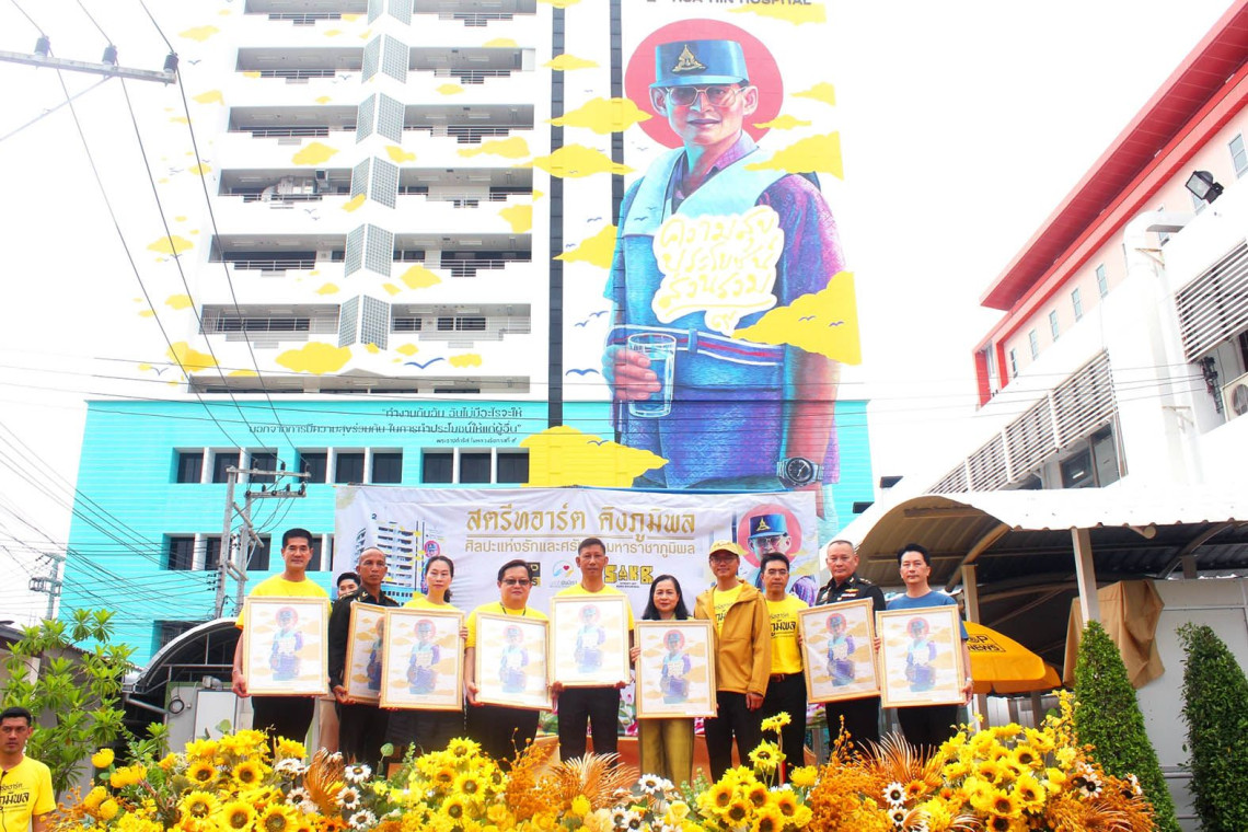 วันที่ 21 ต.ค. นายเสถียร เจริญเหรียญ ผู้ว่าราชการ จ.ประจวบคีรีขันธ์ มอบหมายให้ นายพลกฤต พวงวลัยสิน นายอำเภอหัวหิน เป็นตัวแทนรับมอบภาพวาดสตรีทอาร์ต พระบรมสาทิสลักษณ์ พระบาทสมเด็จพระบรมชนกาธิเบศร มหาภูมิพลอดุลยเดชมหาราช บรมนาถบพิตร ในโครงการ "สตรีทอาร์ต คิงภูมิพล ศิลปะแห่งรักและศรัทธา มหาราชาภูมิพล" บนผนังอาคารเฉลิมพระเกียรติ 80 พรรษา โรงพยาบาลหัวหิน จากนายชวัส (ครูอะไหล่) จำปาแสน ผู้ก่อตั้งโครงการ สตรีทอาร์ต คิงภูมิพล และศิลปินทีม STREET ART KING BHUMIBOL มี พลตรีประยุกต์ อุ่นอบ ผบ.มทบ.15 นางกฤษณา แผ่แสงจันทร์ วัฒนธรรม จ.ประจวบฯ นายนพพร วุฒิกุล นายกเทศมนตรีเมืองหัวหิน นายทวีสิน พัฒนาภิรัส ประธานสภา อบจ.ประจวบฯ นางอุษา พวงวลัยสิน นายกกิ่งกาชาดอำเภอหัวหิน นางยุวนิตย์ ศรศิลป์ ผอ.สถานีวิทยุโทรทัศน์การศึกษาทางไกลผ่านดาวเทียม นพ.จิตตรัตน์ เตชวุฒิพร ผอ.โรงพยาบาลหัวหิน และแขกผู้มีเกียรติร่วมในพิธี โดยก่อนหน้านั้นได้จัดกิจกรรม "เสียง สี ศิลป์" การแสดงดนตรีบทเพลงพระราชนิพนธ์ ชมการวาดภาพสตรีทอาร์ตและศิลป์สนทนาจากเหล่าศิลปิน