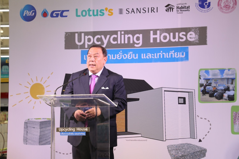 นายจุติ กล่าวว่า โครงการ Upcycling Plastic House 2022 เพื่อความยั่งยืนและเท่าเทียม เป็นความร่วมมือระหว่างหน่วยงานพันธมิตรในภาคอุตสาหกรรม ได้แก่ พีแอนด์จีประเทศไทย ธุรกิจโลตัส ประเทศไทย บริษัท พีทีที โกลบอล เคมิคอล จำกัด (มหาชน) บริษัท แสนสิริ จำกัด (มหาชน) และมูลนิธิที่อยู่อาศัย ประเทศไทย เพื่อร่วมกันสร้างบ้านจากวัสดุรีไซเคิล โดยเก็บรวมรวมบรรจุภัณฑ์ที่ใช้แล้วกลับเข้าสู่ระบบและนำไปรีไซเคิล ด้วยการนำเทคโนโลยีมาใช้สร้างเป็นบ้านพักอาศัยที่เหมาะกับคนพิการแบบ Universal Design นับเป็นการต่อยอดและสร้างมูลค่าเพิ่มให้กับพลาสติกใช้แล้วอย่างคุ้มค่า อีกทั้งเป็นการช่วยเหลือประชาชนกลุ่มเปราะบางและผู้ด้อยโอกาสในสังคมให้สามารถพัฒนาการอยู่อาศัยและยกระดับคุณภาพชีวิตอย่างเท่าเทียมและยั่งยืน