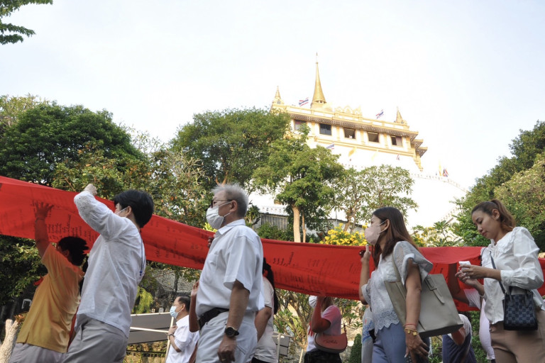 วันที่ 1 พฤศจิกายน 2565 เวลา 07.00น.ผู้สื่อข่าวรายงาน ว่า ที่วัดสระเกศราชวรมหาวิหาร นายชัชชาติ สิทธิพันธ์ุ ผู้ว่าราชการกรุงเทพมหานคร ประธานฝ่ายฆราวาส ร่วมพิธีอัญเชิญผ้าแดงห่มองค์พระบรมบรรพต หรือ พิธีห่มผ้าแดงภูเขาทอง การห่มผ้า พระเจดีย์ และมหาเจดีย์ เป็นการบูชา แสดงความเคารพ ต่อ พระบรมสารีริกธาตุ ต่อพระรัตนตรัย