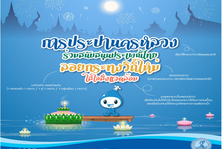 ทั้งนี้ กปน. ขอเชิญชวนประชาชนร่วมส่งเสริมประเพณีที่ดีงามภายใต้แนวคิด “ลอยกระทงวิถีใหม่ ใส่ใจสิ่งแวดล้อม” โดยเลือกใช้กระทงจากวัสดุธรรมชาติและย่อยสลายง่ายในขนาดที่พอดี ประหยัดทรัพยากร และใช้แนวทาง “1 ครอบครัว 1 กระทง” หรือ “1 หน่วยงาน 1 กระทง” หรือสามารถลอยกระทงผ่านช่องทางออนไลน์ เพื่อช่วยลดปริมาณขยะได้ รวมทั้งปฏิบัติตามมาตรการในการควบคุมการแพร่ระบาดของโรคติดเชื้อไวรัสโคโรนา 2019 (COVID-19) ในการเข้าร่วมกิจกรรมต่าง ๆ เพื่อความปลอดภัยและสุขอนามัยที่ดี