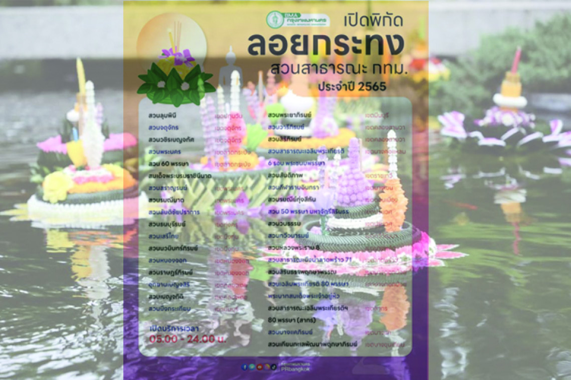 สำหรับใครที่คิดจะเดินทางไปลอยกระทงในสถานที่จัดงานต่างๆ วันนี้ สยามรัฐออนไลน์ ได้รวบรวม พิกัดสถานที่จัดงาน ลอยกระทง ประจำปี พ.ศ. 2565 ณ สวนสาธารณะ กทม. เปิดบริการเวลา 05.00 - 24.00 น. มีที่ไหนบ้าง ไปเช็คได้เลย .ใกล้สวนไหนไปลอยกระทงที่สวนนั้นได้เลยเจ้าค่า