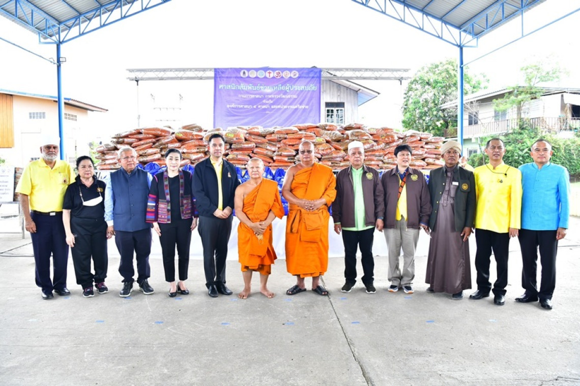 วธ.รวมใจ 5 ศาสนา พุทธ อิสลาม คริสต์ พราหมณ์-ฮินดู ซิกข์ และศาสนิกสัมพันธ์ช่วยเหลือผู้ประสบภัยน้ำท่วมอยุธยา นำเครื่องสมณบริขารถวายแด่พระภิกษุ สามเณร และมอบเครื่องอุปโภคบริโภคแก่ชาวบ้าน เยี่ยมเยียนให้กำลังใจศิลปินพื้นบ้าน