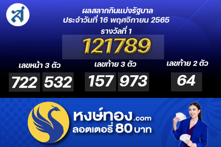 ตรวจหวยงวดประจำวันที่ 16 พ.ย.65 ครบทุกรางวัล