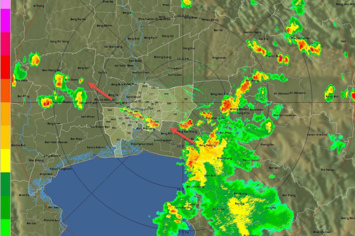 วันที่ 17 พฤศจิกายน 2565 ศูนย์ป้องกันน้ำท่วมสำนักระบายน้ำ กทม.รายงานสถานการณ์ฝนตกในพื้นที่กรุงเทพฯ-ปริมณฑล เวลา 16.00 น.พบ ฝนเล็กน้อยถึงปานกลางเขตบางพลัด บางกอกน้อย พระนคร ปทุมวัน ราชเทวี ดินแดง วัฒนา สวนหลวง คลองเตย พระโขนง บางนา ประเวศ ลาดกระบัง ต่อเนื่อง จ.ฉะเชิงเทรา ชลบุรี เคลื่อนตัวทิศตะวันตกเฉียงเหนือ แนวโน้มคงที่ ปริมาณฝนสูงสุดเขตราชเทวี 20.5 มม.