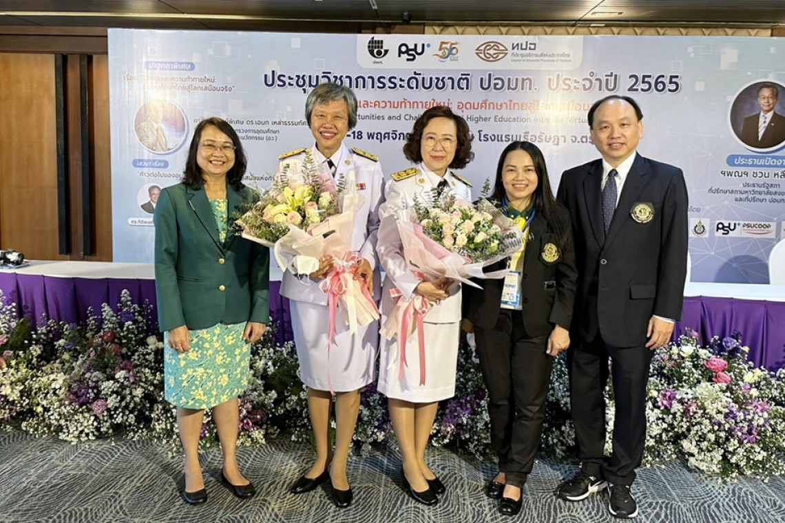 ทั้งนี้ ศาสตราจารย์ ดร.เพ็ญจิตร ศรีนพคุณ และ รองศาสตราจารย์ ดร.รัตติกรณ์ จงวิศาล ได้เข้ารับโล่พระราชทานต่อเบื้องหน้าพระฉายาลักษณ์ สมเด็จพระกนิษฐาธิราชเจ้า กรมสมเด็จพระเทพรัตนราชสุดาฯ สยามบรมราชกุมารี ในพิธีเปิดการประชุมวิชาการระดับชาติ ปอมท. ประจำปี 2565 ภายใต้หัวข้อ “โอกาสและความท้าทายใหม่ : อุดมศึกษาไทยสู่โลกเสมือนจริง New Opportunities and Challenges: Thai Higher Education into the Virtual Word” โดยมีนายชวน หลีกภัย ประธานรัฐสภา เป็นประธานในพิธี เมื่อวันที่ 17 พฤศจิกายน 2565 ณ โรงแรมเรือรัษฎา จังหวัดตรัง จัดโดย ที่ประชุมสภาอาจารย์มหาวิทยาลัยแห่งประเทศไทย (ปอมท.) ร่วมกับ สภาอาจารย์มหาวิทยาลัยสงขลานครินทร์ วิทยาเขต ตรัง