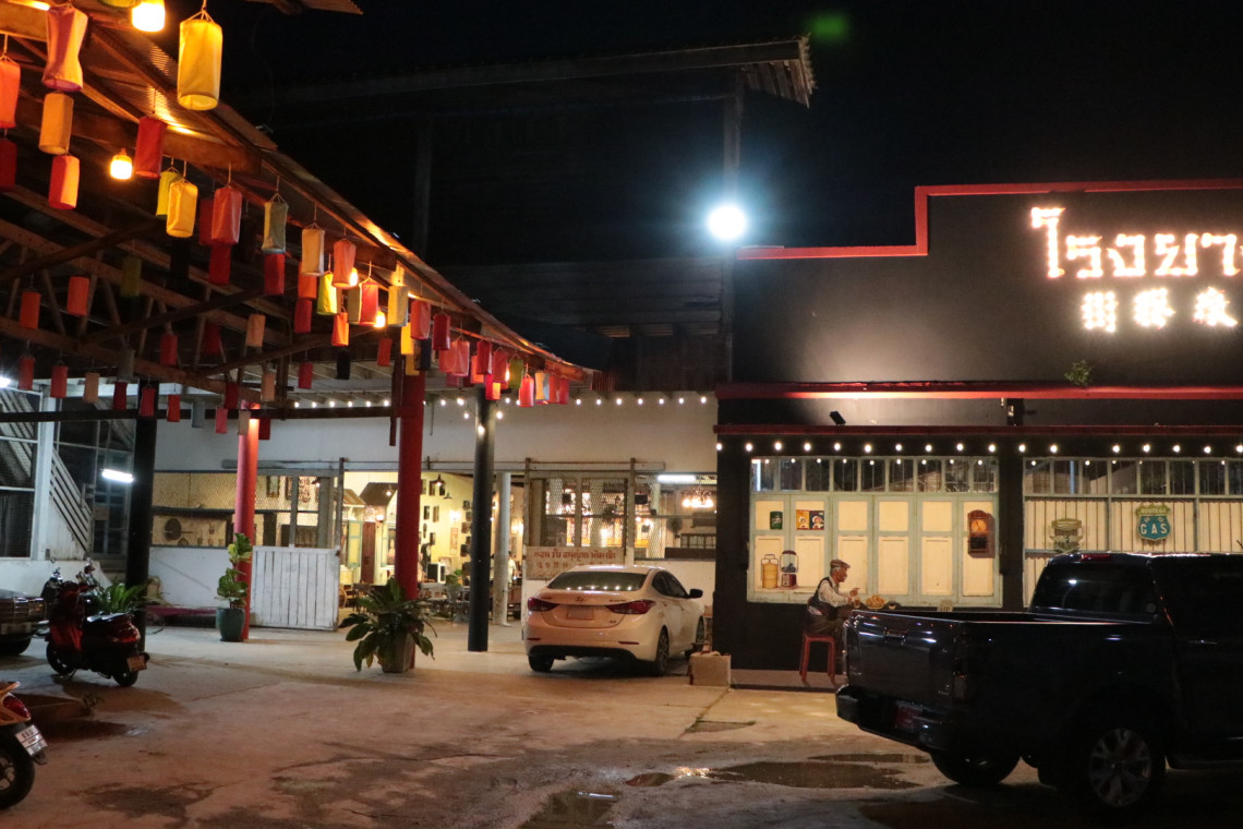 ที่นี้คือโรงยางชื่อ นูซันตารา และก็ตรงที่เป็นแม่น้ำเป็นท่าเรือ ก็จะมีเรือคล้ายๆ เรือฮองเฮา เรือลาก ที่แม่น้ำเจ้าพระยาบรรทุกทราย คล้ายลักษณะนั้น เขาจะถ่ายยางแผ่นส่งไปยังเรือบรรทุกสินค้าที่กลางทะเล และก็ พอธุรกิจยางเปลี่ยน กลายเป็นยางก้อน ก็เลยทำให้โรงยาง ค่อยๆ ย่อยสลายไป ถามว่าเจ้าของร้านยังทำอยู่ไหม ยังทำแต่เป็นการรับซื้อยางก้อน เป็นขี้ยาง ที่อยู่ในถ้วย ก็ยังรับซื้ออยู่ อาหารที่เด่นๆ คือยำมะม่วง ปลาย่างใบเกษม