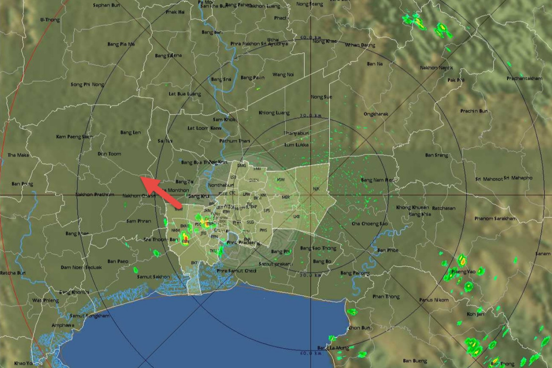 28 พฤศจิกายน 2565 12:11 น. สยามรัฐออนไลน์ กทม. วันที่ 28 พ.ย.2565 ศูนย์ป้องกันน้ำท่วม สำนักระบายน้ำกทม.รายงานสถานการณ์ฝนตกในพื้นที่กรุงเทพฯ เวลา 12.00 น. พบฝนเล็กน้อยเขตบางแค ภาษีเจริญ ธนบุรี บางกอกน้อย บางกอกใหญ่ เคลื่อนตัวทิศตะวันตกเฉียงเหนือ แนวโน้มคงที่