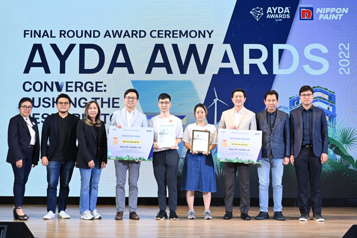 บริษัท นิปปอนเพนต์ เดคโคเรทีฟ โคทติ้ง (ประเทศไทย) จำกัด ประกาศผลสองผู้ชนะการออกแบบด้านสถาปัตยกรรมและการออกแบบตกแต่งภายในระดับมหาวิทยาลัย โครงการ Asia Young Designer Awards Thailand 2022 หรือ AYDA 2022 โดยปีนี้ ชานนท์ บุปผเวส หรือนนท์ นักศึกษาคณะสถาปัตยกรรมศาสตร์มหาวิทยาลัยเทคโนโลยีพระจอมเกล้าธนบุรี กับผลงาน “FOUR FOR REST” และกุลนิษฐ์ พัฒนวิทยกุล หรือแกงส้ม นักศึกษาคณะสถาปัตยกรรมศาสตร์และการออกแบบ สาขาวิชาออกแบบภายในจากมหาวิทยาลัยเทคโนโลยีพระจอมเกล้าพระนครเหนือ กับผลงาน “มรณะศึกษา” ชนะใจกรรมการ คว้ารางวัลชนะเลิศ Gold Winner ในสาขาสถาปัตยกรรมและสาขาออกแบบตกแต่งภายใน รับรางวัลเงินสดมูลค่า 100,000 บาท และโปรแกรมออกแบบ SketchUp Studio Education Software 2022 เป็นเวลา 1 ปี กลับบ้านไปได้อย่างสมศักดิ์ศรี โดยสองผู้ชนะจากประเทศไทยจะเตรียมความพร้อมมุ่งสู่การแข่งขัน Asia Young Designer Summit 2023 ณ ประเทศเวียดนาม ร่วมกับผู้ชนะจากอีก 16 ประเทศทั่วเอเชีย เพื่อชิงโอกาสเข้าอบรมหลักสูตรพิเศษ Design Discovery Program ที่มหาวิทยาลัยชั้นนำระดับโลก Harvard Graduate School of Design สหรัฐอเมริกา เพื่อเก็บเกี่ยวความรู้ด้านการออกแบบอย่างเข้มข้นเป็นเวลา 3 สัปดาห์ รวมมูลค่ากว่า 300,000 บาท โดยไม่เสียค่าใช้จ่าย