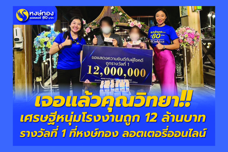 ติดต่อได้แล้วคุณวิทยา...เศรษฐีหนุ่มโรงงานจากจังหวัดชลบุรี ผู้โชคดีถูกรางวัลที่ 1 คนที่ 22 ของหงษ์ทอง.COM จำนวน 2 ใบ มูลค่า 12 ล้านบาท CEO วี ฐิตาภา เจ้าของตัวจริงแห่งแผงสีน้ำเงิน หงษ์ทองลอตเตอรี่ออนไลน์ พร้อมทีมงานออกเดินทางทันที มุ่งหน้าสู่บ้านผู้โชคดี ที่จังหวัดชลบุรี คุณวี CEO กล่าวอีกว่า ลูกค้าอยู่ที่ไหนก็จะไป เพื่อนำเงินสดมูลค่า 12 ล้านบาท ไปมอบให้ถึงที่ แบบรับเต็ม ไม่หักค่าธรรมเนียมสักบาท โดยคุณวิทยาเผยว่า ตนเองเพิ่งทราบว่าภรรยาตั้งครรภ์ไม่กี่วันที่ผ่านมา เลยขอโชคจากลูกน้อย หลังจากนั้นได้ฝันว่าตัวเองกำลังถ่ายหนักในห้องน้ำ ก่อนเอาไปทำนายฝัน แล้วได้เลข 805 มา คุณวิทยาได้ซื้อเลขจาก หงษ์ทอง.COM เป็นเลขชุด จำนวน 2 ใบ ซึ่งการถูกรางวัลครั้งนี้เป็นโชคของครอบครัวพ่อ-แม่-ลูก มือใหม่จริงๆ