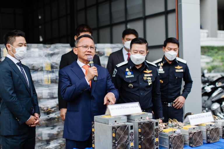 นายสมศักดิ์ กล่าวว่า จากกรณีที่ กรมสอบสวนคดีพิเศษ เปิดปฏิบัติการปราบโกงสายฟ้าฟาด ปราบปรามจับกุมกลุ่มผู้ที่ทำการลักลอบใช้กระแสไฟฟ้าเพื่อนำมาใช้ในการขุดเหรียญดิจิทัล โดยเฉพาะบิทคอยน์ ในพื้นที่จ.นนทบุรี 39 แห่งและกรุงเทพมหานคร 2 แห่ง รวม 41 จุด หลังจากที่มีผู้ร้องเรียนและทำการสืบสวนสอบสวนมาเกือบ 1 ปี โดยสามารถจับกุมผู้กระทำผิดเพศชาย 1 ราย อายุ 30 ปี และยึดเครื่องขุดเงินดิจิทัลรุ่นเอส 9 ได้ประมาณ 3,500 เครื่อง ทั้งนี้จากการตรวจสอบข้อมูลพบว่า กลุ่มผู้กระทำผิดได้ลักลอบติดตั้งตั้งเครื่องขุดเงินดิจิทัลแห่งละประมาณ 100 เครื่อง โดยทำมาแล้วประมาณ 2 ปี ส่งผลให้รัฐเสียหายค่าไฟฟ้าเดือนละ 20-30 ล้านบาท รวม 2 ปีกว่า 500 ล้านบาท และจากการตรวจสอบพบว่าที่ผ่านมามีการลักลอบใช้ไฟฟ้าในอาคารพาณิชย์ปริมาณสูงมากส่งผลให้มีอุณหภูมิสูงตามไปด้วย ซึ่งการใช้ไฟฟ้าลักษณะนี้ทำให้มีอาคารพาณิชย์ถูกไฟไหม้ไปแล้วประมาณ 3 แห่ง จึงถือว่าอันตรายมาก