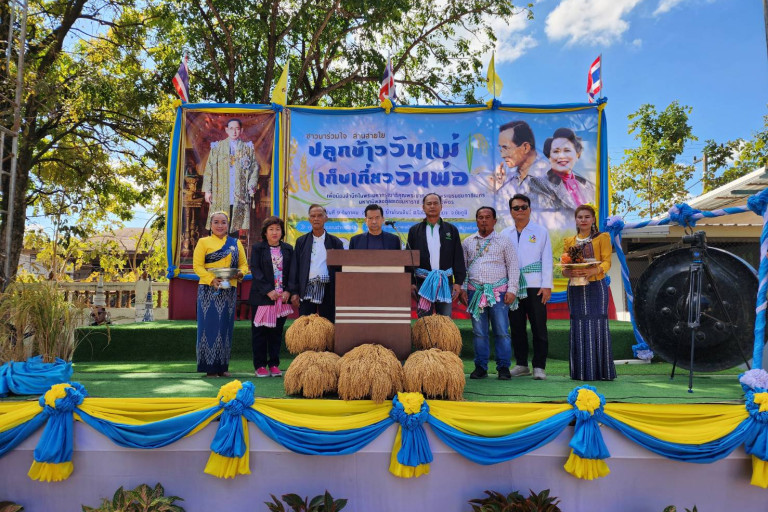 นาย จิรศักดิ์ เนือยทอง กำนันตำบลโอโล ปะธาน ศูนย์ข้าวชุมชนตำบลโอโล ประธานการจัดงาน ได้รายงานว่าศูนย์ข้าวชุมชนตำบลโอโล ร่วมกับศูนย์ข้าวชุมชนตำบล ลำน้ำพรม และศูนย์ข้าวชุมชนตำบลหนองหอย รวม 3 ศูนย์มีพื้นที่ปลูกข้าวประมาณ 7 ไร่เศษ ได้รับการสนับสนุนจาก นาย สุเทพ คงมาก ที่ปรึกษาอธิบดีกรมการข้าว และ ม.เกษตร เป็นที่ปรึกษาโครงการฯ มาทำแปลงนาสาธิตการปลูกข้าว เป็นแหล่งเรียนรู้การทำเกษตรแบบลดต้นทุน แต่เพิ่มผลิตให้มากขึ้น โดยการใช้เทคโนโลยีเข้ามาทดแทนทั้งแรงงานที่ขาดแคลน การผลิตปุ๋ยใช้เอง วิธีการและระยะเวลาการปลูกข้าว ซึ่งเกษตรกรใช้ฤกษ์วันแม่ 12 สิงหาคม ลงมือปลูก ตลอดจนการคัดเลือกพันธ์ข้าวที่จะนำมาปลูก ซึ่งทั้ง 3 ศูนย์ เลือกพันธุ์ข้าวหอมดอกมะลิ 105 และข้าวเหนียว พันธุ์ กข.160 ทำให้ผลผลิตในปีนี้เพิ่มขึ้นถึงแม้ว่าจะประสบกับภัยธรรมชาติในช่วงหนึ่งก็ตาม ทำให้ปีนี้ผลผลิตมากขึ้น และเนื่องในวันคล้ายวันพระราชสมภพ พระบาทสมเด็จพระบรมชนกาธิเบศร มหาภูมพลอดุลยเดชมหาราช บรมนารถบพิตร 5 ธันวาคม 2565 วันพ่อแห่งชาติ จึงได้เวลาเก็บเกี่ยว ตามโครงการชาวนาร่วมใจ สานสายใย”ปลูกข้าววันแม่ เก็บเกี่ยววันพ่อ”