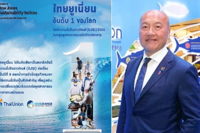 วันที่ 12 ธ.ค.65 นายธีรพงศ์ จันศิริ ประธานกรรมการบริหารและประธานเจ้าหน้าที่บริหาร บริษัท ไทยยูเนี่ยน กรุ๊ป จำกัด (มหาชน) กล่าวว่า ไทยยูเนี่ยน ในฐานะที่เป็นบริษัทอาหารทะเลชั้นนำของโลก คว้าอันดับ 1 ในกลุ่มอุตสาหกรรมผลิตภัณฑ์อาหารของโลก จากดัชนีความยั่งยืนดาวโจนส์ (DJSI) เป็นการแสดงถึงการได้รับการรับรองความก้าวหน้าจากการดำเนินงานภายใต้กลยุทธ์ SeaChange® ซึ่งเป็นกลยุทธ์ความยั่งยืนของบริษัท
