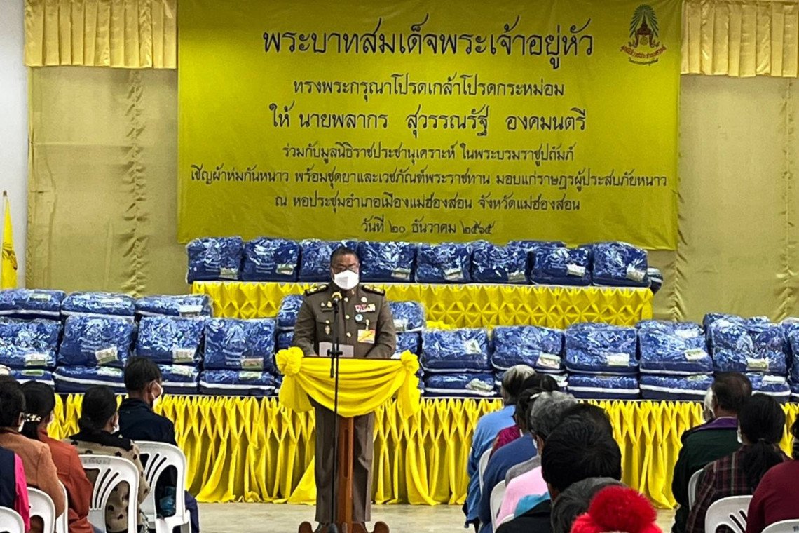 พระบาทสมเด็จพระเจ้าอยู่หัว และสมเด็จพระนางเจ้า ฯ พระบรมราชินี ทรงห่วงใยสุขภาพอนามัยของราษฎร โดยเฉพาะผู้สูงอายุ เด็ก และผู้ยากไร้ ในภาคเหนือที่ได้รับผลกระทบจากสภาพอากาศที่หนาวเย็น ในโอกาสนี้ ทรงพระกรุณาโปรดเกล้าโปรดกระหม่อมให้องคมนตรี เชิญผ้าห่มกันหนาว พร้อมชุดยาและเวชภัณฑ์พระราชทาน ไปมอบแก่ราษฎรที่ได้รับผลกระทบจากภัยหนาวในพื้นที่จังหวัดแม่ฮ่องสอน