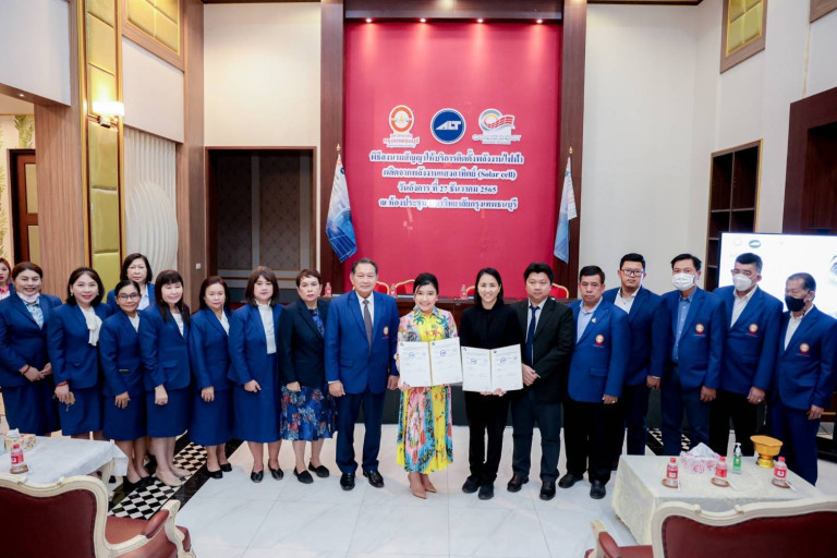 ศ.ดร.บังอร เบ็ญจาธิกุล อธิการบดีมหาวิทยาลัยกรุงเทพธนบุรี (มกธ.) พร้อมด้วย ผศ.ดร.วิทยา เบ็ญจาธิกุล รองอธิการบดีฝ่ายบริหาร คุณปรียาพรรณ ภูวกุล รองกรรมการผู้อำนวยการ บริษัท เอแอลที เทเลคอม จำกัด (มหาชน) และคุณอิทธิเสฏฐ์ จอมทะรักษ์ Managing Director บริษัท Catalyst Energy จำกัด ร่วมพิธีลงนามสัญญาให้บริการติดตั้งพลังงานไฟฟ้าผลิตจากพลังงานแสงอาทิตย์ SOLAR CELL