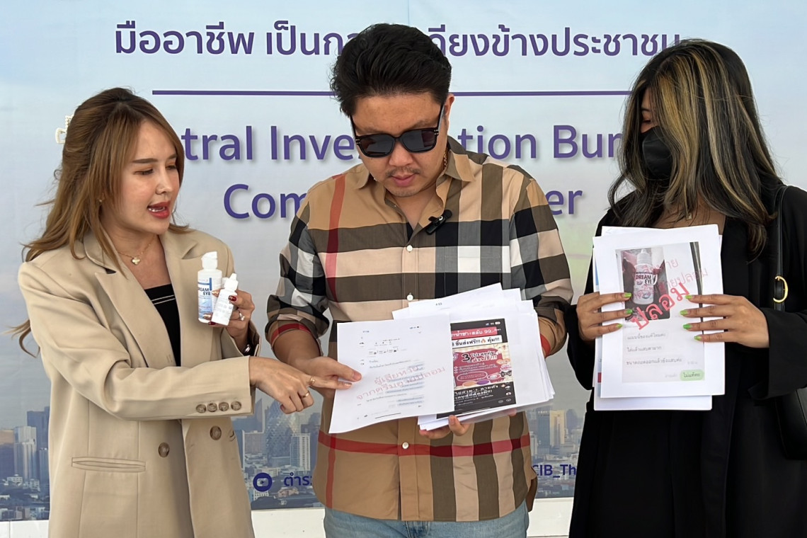 วันที่ 5 ม.ค.66 เวลา 10.30 น.ที่ ศูนย์รับแจ้งความกองบัญชาการตำรวจสอบสวนกลาง ถนนพหลโยธิน จตุจักร กทม. น.ส.สิรินดา ตัลติศิลปพงศ์ และนายศราวุธ ลาภส่งผล กรรมการบริษัท 300 ร่ำรวย(โซลูชั่น)จำกัด ตัวแทนและผู้นำเข้าผลิตภัณฑ์น้ำยาคอนแทคเลนส์แบรนด์ ดรีมอาย(dream eye)นำหลักฐานสินค้าปลอมและข้อความที่ลูกค้าแจ้งข้อมูลมามอบให้ ร.ต.อ.ชนัตพล จันพลงาม รองสว.กก.4บก.ปคบ. เพื่อดำเนินคดีกับเจ้าของร้านค้าในออนไลน์หลายแพลตฟอร์มหหลังตรวจสอบพบว่ามีการจำหน่ายสินค้าน้ำยาคอนแทคเลนส์แบรนด์ ดรีมอาย(dream eye)ปลอม จนมีผู้หลงเชื่อ ซื้อไปใช้แล้วได้รับความเสียหายเป็นอันตรายแก่ดวงตา