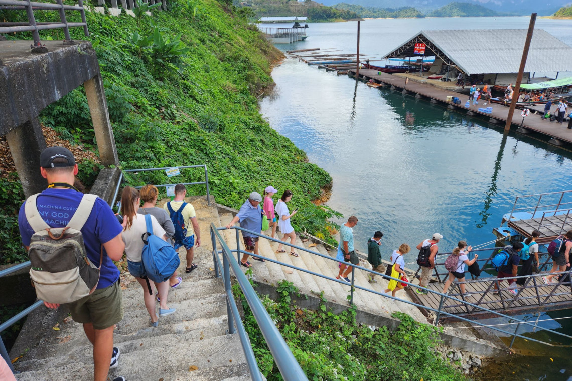 วันที่ 7 มกราคม 2566 ผู้สื่อข่าวรายงานว่า บรรยากาศที่ท่าเรือท่องเที่ยวอ่างเก็บน้ำเขื่อนรัชชประภา(เขื่อนเชี่ยวหลาน) อ.บ้านตาขุน จ.สุราษฎร์ธานี ได้มีนักท่องเที่ยวจำนวนมากนับหลายร้อยคน โดย 98 เปอร์เซ็นต์เป็นชาวต่างชาติจากยุโรป อเมริกาและรัสเซีย มาจาก จ.ภูเก็ต พังงา กระบี่ เกาะสมุย เกาะพะงัน รวมทั้งจากกรุงเทพฯ เดินทางมาลงเรือโดยสารเพื่อเดินทางท่องเที่ยวชมความงามบริเวณเขาสามเกลอ หรือกุ้นหลินเมืองไทย และเข้าพักแรมรีสอร์ตแพที่พักในอ่างเก็บนำเขื่อนรัชชประภา รวมทั้งแหล่งท่องเที่ยวธรรมชาติในเขตอุทยานแห่งชาติเขาสก ซึ่งนิตยสารโว้คของฝรั่งเศส ยกให้เป็น 1 ใน 8 อุทยานแห่งชาติที่สวยที่สุดในโลก โดยมีเจ้าหน้าที่อุทยาน เจ้าหน้าที่เจ้าท่าภูมิภาคและเจ้าหน้าที่ตำรวจท่องเที่ยวดูแลความเรียบร้อยให้นักท่องเที่ยวสวมเสื้อชูชีพตลอดเวลาที่อยู่ในเรือ