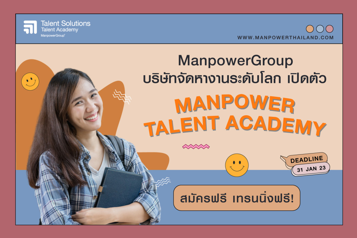 Manpower Talent Academy เปิดรับสมัคร Manpower Trainee ครั้งแรกในประเทศไทย!!! เพื่อร่วมเรียนรู้ สัมผัสประสบกาณ์ในการทำงานจัดหาคน และการสัมภาษณ์ โดยตรงจากผู้เชี่ยวชาญจากทุกหน่วยงานของแมนพาวเวอร์กรุ๊ป ที่จะมาถ่ายทอดวิชาให้แบบเอ็กซ์คลูซีฟ เพื่อก้าวสู่การเป็น Recruiter หน้าใหม่ของวงการ HR และยังเป็นโอกาสสำคัญที่จะได้รับคัดเลือกเข้าทำงานกับแมนพาวเวอร์กรุ๊ป บริษัทชั้นนำระดับโลก หนึ่งในลิสต์ของ Fortune 500 companies ที่เปิดให้บริการมากว่า 70 ปี และได้ถูกจัดอันดับว่าเป็นบริษัทที่มีจรรยาบรรณมากที่สุดในโลก 13 ปีซ้อน