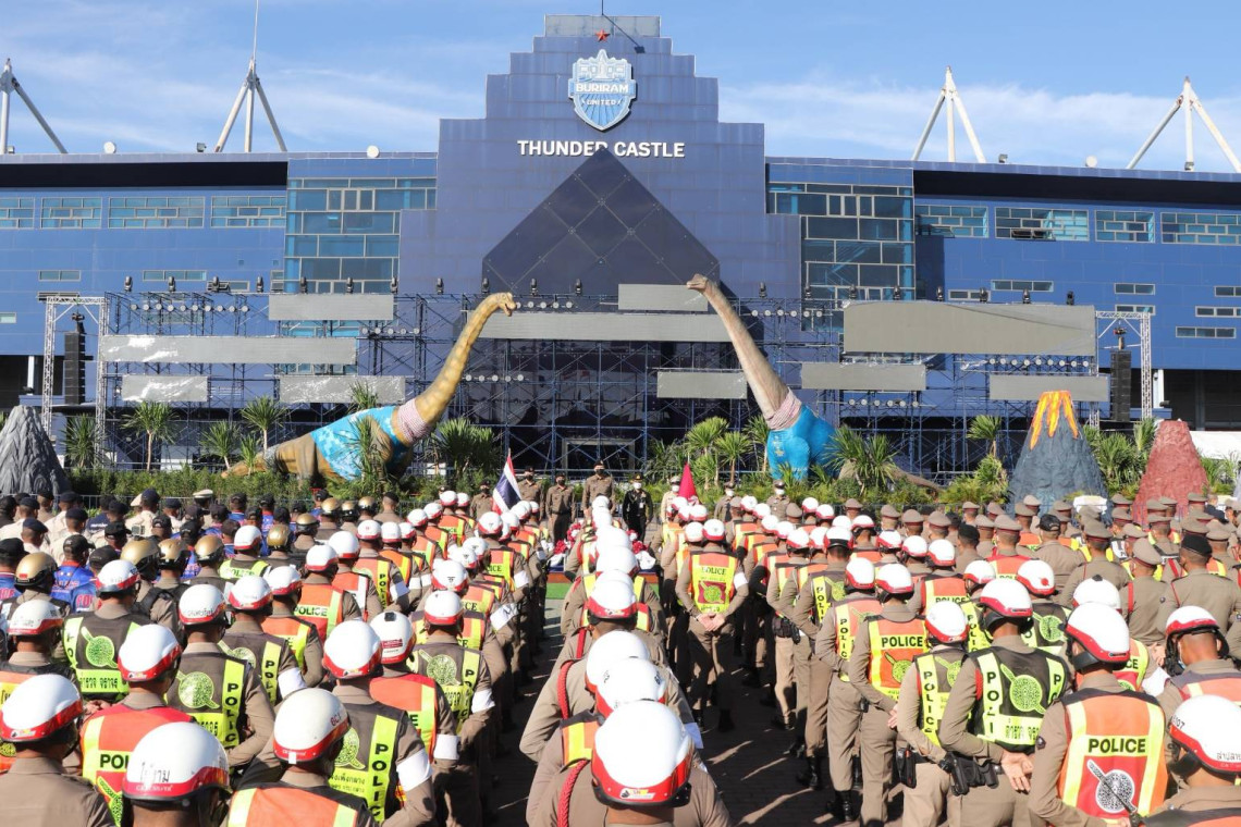 วันที่ 19 ม.ค.66 ผู้สื่อข่าวรายงาน ว่า ที่บริเวณลานด้านหน้าสนามช้างอารีน่า ต.อิสาณ อ.เมือง จ.บุรีรัมย์ พล.ต.ต.รุทธพล เนาวรัตน์ ผบก.ภ.จว.บุรีรัมย์ เป็นประธานปล่อยแถวระดมกวาดล้างอาชญากรรมในช่วงการจัดงาน ‘บุรีรัมย์ มาราธอน 2023 พรีเซนเต็ด บาย เครื่องดื่มตราช้าง’ ภายใต้แนวคิด ‘สวรรค์ของนักวิ่ง’ ในรูปแบบ Night Run ที่จะจัดขึ้นในวันที่ 22 ม.ค.2565 นี้ ณ สนามช้างอินเตอร์เนชั่นแนลเซอร์กิต ต.อิสาณ อ.เมือง จ.บุรีรัมย์