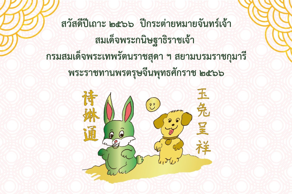 สมเด็จพระกนิษฐาธิราชเจ้า กรมสมเด็จพระเทพรัตนราชสุดาฯ สยามบรมราชกุมารี พระราชทานพรตรุษจีนพุทธศักราช ๒๕๖๖ 玉兔呈祥 กระต่ายหยกนำโชคลาภ