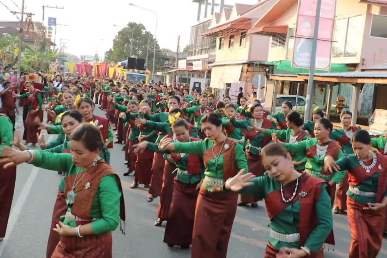 สุรินทร์ ตระการตา เทศกาลนุ่งผ้าไหม ใส่ประเกือมสวยงาม ขบวนนางรำกับชุดผ้าไหมพื้นเมือง สวมประเกือม เรือมกันตรึม ศิลปวัฒนธรรมที่โดดเด่น และเป็นเอกลักษณ์ที่มีชื่อเสียงของอำเภอเขวาสินรินทร์