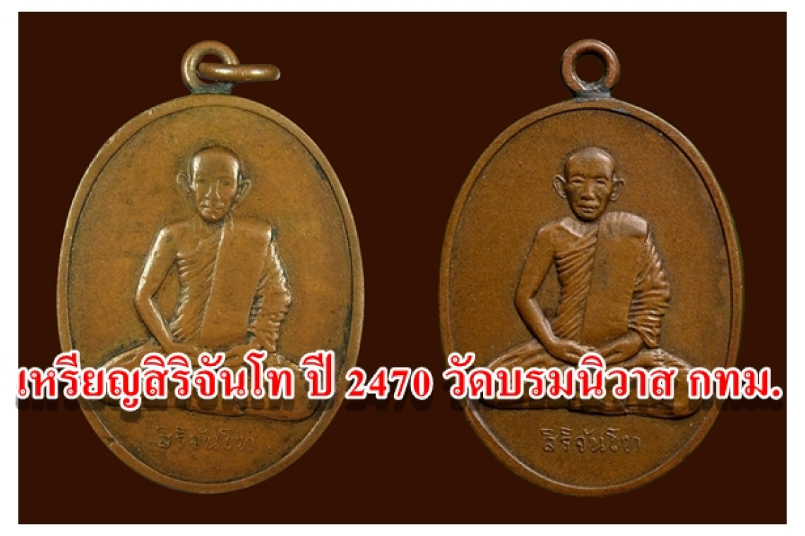 “เหรียญสิริจันโท” หรือ “เหรียญพระอุบาลีคุณูปมาจารย์” แห่งวัดบรมนิวาส สร้างโดย “พระอุบาลีคุณูปมาจารย์” พระเกจิอาจารย์ที่มีชื่อเสียงลือเลื่องเป็นที่เคารพนับถือและศรัทธาเลื่อมใสของพุทธศาสนิกชนโดยถ้วนทั่ว โดยเฉพาะอย่างยิ่ง “เหรียญรุ่นปี 2470” ซึ่งมีความเป็นเลิศเป็นที่ปรากฏในด้านเมตตามหานิยมและแคล้วคลาดจากภยันตรายต่างๆ จึงนับว่าเป็นเหรียญที่ได้รับความนิยมและใฝ่หาของบรรดานักนิยมสะสมเหรียญหนึ่งทีเดียว