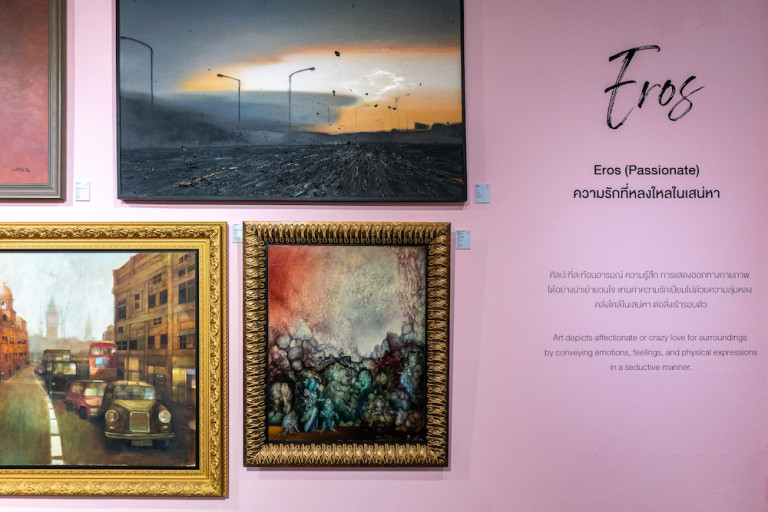 โดยแบ่งผลงานศิลปะออกเป็น 8 กลุ่มความรักตามความเชื่อกรีกโบราณ คือ Eros (รักเร่าร้อน) Philia (มิตรภาพอันลึกซึ้ง) Ludus (รักขี้เล่น) Agape (รักแบบไม่เห็นแก่ตัว) Pragma (รักยืนยง) Philautia (รักตัวเอง) Storge (รักครอบครัว) และ Mania (รักที่คลั่งไคล้)