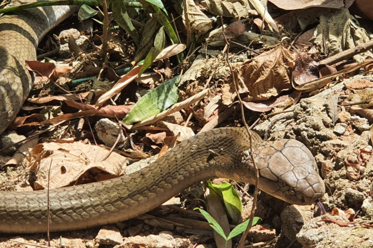 วันที่ 18 ก.พ.66 ผู้สื่อข่าวรายงานว่า ที่ร้านอาหารบริเวณสระมรกต แหล่งท่องเที่ยวอันซีน ม.2 ต.คลองท่อมเหนือ อ.คลองท่อม จ.กระบี่ มีงูจงอางขนาดใหญ่ยาวประมาณ 4 เมตร น้ำหนักไม่น้อยกว่า 20 กิโลกรัม เลื้อยออกจากป่ามาหากินอยู่ข้างร้าน สร้างความตื่นตระหนกแก่ผู้ที่พบเห็นเป็นอย่างมาก เนื่องจากงูจงอางเป็นงูที่ดุร้าย กัดแล้วทำให้ผู้ที่ถูกกัดเสียชีวิตได้