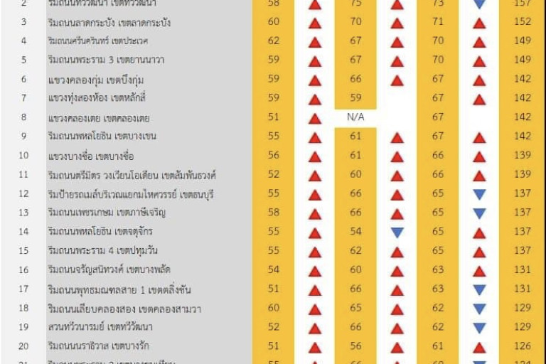 41.สวน 60 พรรษาสมเด็จพระนางเจ้าพระบรมราชินีนาถ เขตลาดกระบัง เขตลาดกระบัง : มีค่าเท่ากับ 55 มคก./ลบ.ม.
