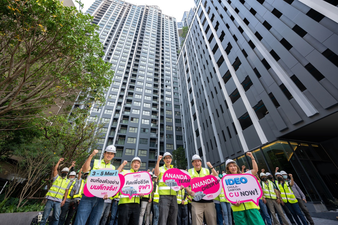 คุณชานนท์ เรืองกฤตยา (กลาง) ประธานเจ้าหน้าที่บริหาร พร้อมด้วย คุณประเสริฐ แต่ดุลยสาธิต ประธานเจ้าหน้าที่บริหาร สายงานธุรกิจอสังหาริมทรัพย์ บริษัท อนันดา ดีเวลลอปเม้นท์ จำกัด (มหาชน) พร้อมทีมผู้บริหาร เข้าตรวจความพร้อมของโครงการ ไอดีโอ จุฬา – สามย่าน และให้กำลังใจทีมงานที่ปฏิบัติหน้าที่ในโครงการทุกคน เพื่อเตรียมการเปิดให้ลูกค้าเข้าชมห้องตัวอย่างบนตึกจริงครั้งแรก ได้สัมผัสกับห้องจริง บรรยากาศจริง ในวันที่ 3 - 5 มีนาคมนี้ พร้อมเปิดจองรอบพิเศษ Early Bird และรับข้อเสนอที่ดีที่สุด เฉพาะจองในงาน อาทิ 1 ห้องนอน ราคาปกติ 5.39 ลบ.* ลดเหลือ 4.99 ลบ. ฟรี! ค่าใช้จ่ายวันโอน* ยูนิตพิเศษ ให้ครบทั้งเฟอร์นิเจอร์ เครื่องใช้ไฟฟ้า พร้อมอยู่-ปล่อยเช่าได้ทันที