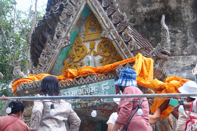 ผู้สื่อข่าวรายงานว่า สำหรับบรรยากาศของวัดวิสัยไตรรัตนาราม หรือวัดร้าง มีนักท่องเที่ยว พุทธศาสนิกชนหลั่งไหลเดินทางมากราบไว้ขอพรอย่างเนืองแน่น โดยเฉพาะวันนึ่งเป็นวันหยุด นักท่องเที่ยวส่วนหนึ่งจึงร่วมทำบุญและร่วมพิธีแห่ผ้าสไบห่มองค์เจดีย์ “ธรรมเจดีย์มะ 8” เพื่อเป็นสิริมงคลด้วย