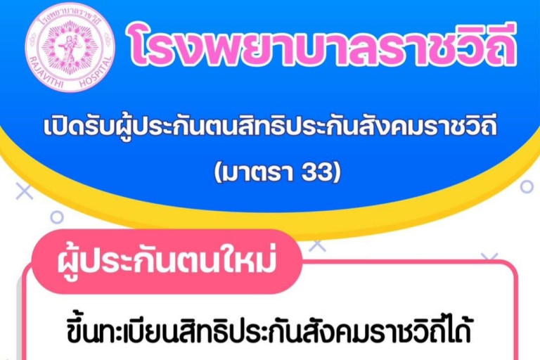 โรงพยาบาลราชวิถี กรมการแพทย์ เปิดรับผู้ประกันตนสิทธิประกันสังคมราชวิถี (มาตรา 33) สำหรับ “ผู้ประกันตนใหม่” สามารถขึ้นทะเบียนสิทธิประกันสังคมราชวิถีได้ตามเขตพื้นที่ของประกันสังคม โดยผู้ประกันตนสามารถเปลี่ยนบัตรรับรองสิทธิประจำปี ได้ตั้งแต่วันที่ 16 ธันวาคม 2565 ถึง 31 มีนาคม 2566 ตามเขตพื้นที่ของประกันสังคม