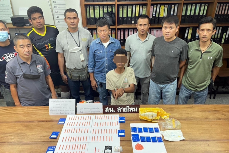 วันที่ 8 มี.ค.66 พล.ต.ต.อรรถพล อนุสิทธิ์ ผบก.น.2 พร้อมด้วย พ.ต.อ.สุรพงษ์ ธรรมพิทักษ์ รอง ผบก.น.2 ได้รับรายงานจากพ.ต.อ.รังสรรค์ สอนสิงห์ ผกก.สน.สายไหม โดย พ.ต.ท.พงษ์สิทธิ์ ปาลาพงศ์ รอง ผกก.สส.สน.สายไหม พ.ต.ท.ปราโมทย์ อรชุน สว.สส.สน.สายไหม พร้อมเจ้าหน้าที่ตำรวจฝ่ายสืบสวน สน.สายไหม ร่วมกันจับกุมตัวนายธงชัย (ขอสงวนนามสกุล) หรือเบิร์ด อายุ 22 ปี พร้อมของกลาง ยาบ้า 10,996 เม็ด ยาไอซ์ ประมาณ 28.22 กรัม อาวุธปืนกล็อค 19 ขนาด 9 มม. จำนวน 1 กระบอก เครื่องกระสุน ขนาด 9 มม. จำนวน 33 นัด จยย.ยามาฮ่า เอ็นแม็ค สีดำ จำนวน 1 คัน โดยจับกุมได้บริเวณลานจอดรถหน้าในหมู่บ้านแห่งหนึ่ง ซ.สายไหม 33/1 แขวงสายไหม เขตสายไหม กรุงเทพฯ เมื่อวันที่ 7 มี.ค.66 เวลาประมาณ 14.00 น.
