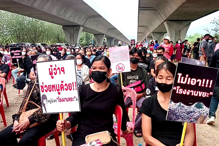 เมื่อวันที่ 12 มี.ค.66 ที่บริเวณใต้ทางด่วนมอเตอร์เวย์ บางปะอิน-โคราช (กำลังก่อสร้าง) ในเขต ตำบลทับกวาง อำเภอแก่งคอย จังหวัดสระบุรี ได้มีชาวบ้านจาก หมู่ 1/3/6/9 และ หมู่ 10 จำนวนกว่า 1,200 คนพากันมารวมตัว ประท้วงคัดค้านการก่อสร้าง “โรงงานกำจัดขยะอุตสาหกรรม” ที่จะมาก่อตั้งดำเนินกิจการในพื้นที่หมู่ 3 ของตำบลทับกวาง ซึ่งชาวบ้านเกรงว่าจะนำมลพิษ ด้านฝุ่นละออง กลิ่น น้ำ ระบบขนส่ง ยานพาหนะที่จะวิ่งนำขยะเข้าสู่โรงงาน ส่งผลกระทบต่อสิ่งแวดล้อม ให้กับชุมชนที่มีประชาชนเกือบ 5,000คน และสถานที่ตั้งโรงงานยังอยู่ใกล้โรงเรียน และวัด ที่มีทั้งเด็ก ๆ และพระสงฆ์
