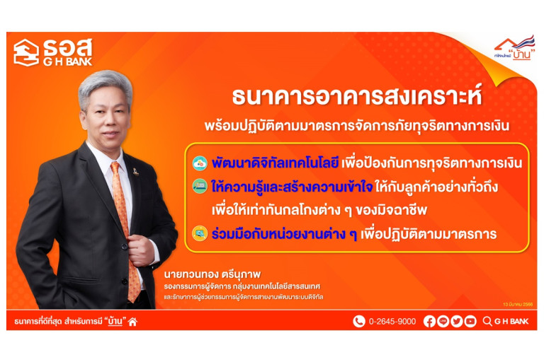ธอส. พร้อมรับนโยบาย ธปท. เดินหน้ามาตรการจัดการภัยทุจริตทางการเงิน สกัดมิจฉาชีพ