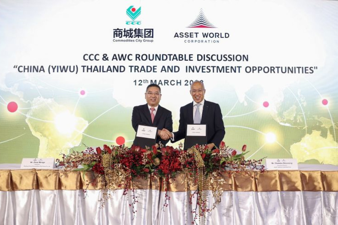 บริษัท แอสเสท เวิรด์ คอร์ป จำกัด (มหาชน) หรือ AWC ผู้พัฒนาอสังหาริมทรัพย์ของไทยที่มุ่งเน้นตอบสนองไลฟ์สไตล์แบบครบวงจร เสริมศักยภาพธุรกิจค้าส่งของไทย พร้อมชู เออีซี เทรด เซ็นเตอร์ (AEC Trade Center) เป็นศูนย์กลางในการเชื่อมโยงสู่ตลาดค้าส่งนานาชาติอย่างครบวงจรระดับภูมิภาค โดยลงนามสานต่อความร่วมมือเชิงกลยุทธ์กับ อี้อู (Yiwu) หรือ Zhejiang China Commodities City Group Co., Ltd. (CCC Group) ผู้พัฒนาและบริหารตลาดค้าส่งสินค้าเบ็ดเตล็ดที่ใหญ่ที่สุดในโลกจากเมืองอี้อู สาธารณรัฐประชาชนจีน ด้วยความเชื่อมั่นในศักยภาพของประเทศไทย พร้อมผนึกกำลังกับ AWC สร้างระบบนิเวศให้กับธุรกิจค้าส่งไทยอย่างยั่งยืน โดยมี Mr. Zhao Wenge, President of CCC Group และนายโชคดี วิศาลสิงห์ กรรมการบริหาร กลุ่มธุรกิจค้าส่ง บริษัท แอสเสท เวิรด์ คอร์ป จำกัด (มหาชน) ร่วมลงนามความร่วมมือเชิงกลยุทธ์ รวมถึงผู้บริหารและผู้ประกอบการกว่า 20 บริษัทชั้นนำและตัวแทนภาครัฐจากสาธารณรัฐประชาชนจีน รวมกลุ่มบริษัทชั้นนำและตัวแทนภาครัฐจากประเทศไทย ณ ห้องแกรนด์บอลรูม โรงแรม ฮิลตัน สุขุมวิท กรุงเทพฯ
