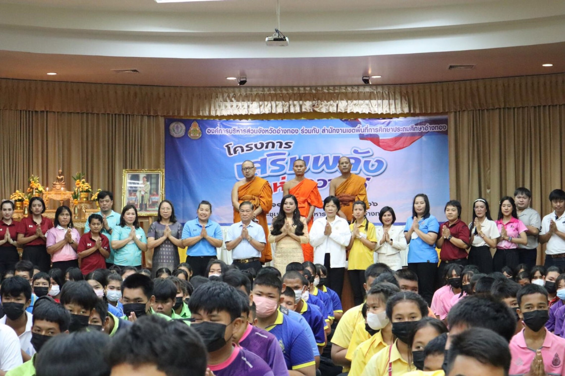 อบจ.อ่างทอง จัดโครงการเสริมพลังแห่งความดี เพื่อให้เด็กและเยาวชนได้มีความรู้ ความเข้าใจ ในหลักธรรมของพระพุทธศาสนา