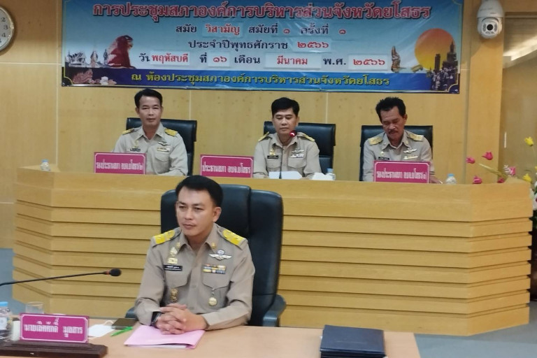 วันที่ 16 มี.ค.66 ผู้สื่อข่าวรายงาน ว่า ที่ห้องประชุมสภาองค์การบริหารส่วนจังหวัดยโสธร ชั้น 4 นายสุวัฒน์ เข็มเพชร รองผู้ว่าราชการจังหวัดยโสธรเป็นประธานประกอบพิธีเปิดการประชุมสภาองค์การบริหารส่วนจังหวัดยโสธรสมัยวิสามัญ สมัยที่ 1 /2566 เพื่อให้สมาชิกสภาองค์การบริหารส่วนจังหวัดยโสธรเลือกประธานสภาและรองประธานสภา อบจ.ยโสธรที่ว่างเนื่องจากนางสุภาพร สลับศรี ประธานสภาอบจ.ได้ลาออกจากจากตำแหน่งประธานสภา อบจ.ยโสธร และลาออกจากการเป็นสมาชิกสภา อบจ.ยโสธร จึงทำให้ตำแหน่งประธานสภา อบจ.และตำแหน่งรองประธานสภาอบจ.ยโสธรว่างลง จึงได้เปิดประชุมสภา อบจ.ยโสธรสมัยวิสามัญฯขึ้นเพื่อให้สมาชิกสภา อบจ.ยโสธรเลือกประธานและรองประธานสภา อบจ.ยโสธรคนใหม่โดยมี นายสมยศ นามพุทธา ท้องถิ่นจังหวัดยโสธร นายวิเชียร สมวงศ์ นายก อบจ.ยโสธร พร้อมรองนายก ที่ปรึกษานายก ส.อบจ.ยโสธร ข้าราชการสังกัดองค์การบริหารส่วนจังหวัดยโสธรเข้าร่วมประชุมในครั้งนี้