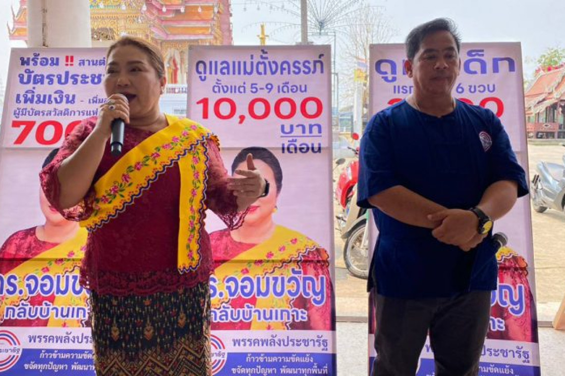 ผู้สื่อข่าวรายงานว่า ที่วัดบางปลา ต.บ้านเกาะ อ.เมืองสมุทรสาคร น.ส.จอมขวัญ กลับบ้านเกาะ ส.ส.จังหวัดสมุทรสาคร เขต 3 (พรรคพลังประชารัฐ) และคณะฯ ได้จัดเวทีออกปราศรัยสัญจร เพื่อหาเสียง ณ บริเวณวัดบางปลา หมู่ที่ 4 ต.บ้านเกาะ โดยมี นายภัฏ สุริวงษ์ (ว่าที่ผู้สมัคร ส.ส.) เข้าร่วมเวทีฯปราศรัยหาเสียงในพื้นที่สมุทรสาคร หลังจากได้ประเดิมไปครั้งแรก ที่ศาลเจ้าแป๊ะกง ต.บางกระเจ้า ที่ผ่านมา ทั้งนี้ว่า ปรากฏว่า นอกจากมาแนะนำตัวและนำเสนอชูด้านนโยบายของพรรค พปชร. ได้รับทราบ โดยมีผู้สนใจมาร่วมรับฟังในเวทีหาเสียง ประมาณ 700 คน ทั้งนี้โดย น.ส.จอมขวัญ ได้แต่งชุดชาวรามัญ และมีคล้องผ้าสไบปัก ซึ่ในระหว่างการพูดคุยก็สลับพูกสำเนียงภาษาที่ใช้เป็นภาษาชาวไทยรามัญด้วย เนื่องจากในพื้นที่ส่วนใหญ่เป็นคนไทยชาวเชื้อสายรามัญ สร้างความสนใจให้แก่ผู้คนพื้นบ้าน
