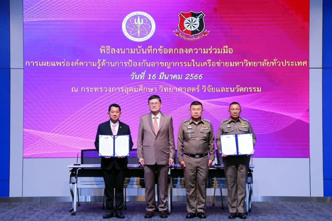 กระทรวง อว. จับมือ รร.นายร้อยตำรวจ ป้องกันอาชญากรรมทั้งการกระทำความผิดและการตกเป็นเหยื่อในมหาวิทยาลัยทั่วประเทศ โดยใช้นวัตกรรมทางเทคโนโลยี ทักษะเอาตัวรอดเมื่อต้องเผชิญเหตุและสร้างระบบสภาพแวดล้อมในพื้นที่