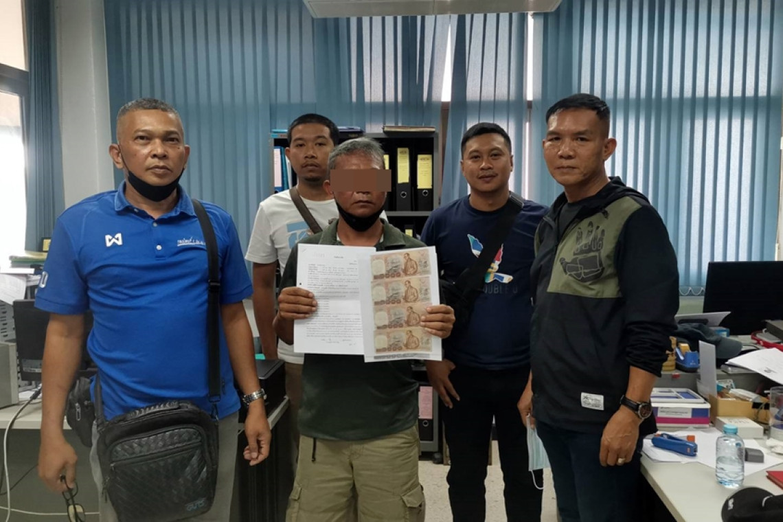 ตำรวจบุกรวบหนุ่มใหญ่ เอาแบงค์พันปลอมจำนวน 2 ใบ ไปหลอกป้าข้างบ้านให้ช่วยโอนเงินเข้าบัญชีตัวเอง ตรวจสอบเห็นผิดสังเกตุ นำไปตรวจสอบกับธนาคารพบว่าเป็นธนบัตรปลอม จึงแจ้งความ หลังจับตัวสารภาพได้ธนบัตรใบละ 1 พันบาท จำนวน 6 ใบมาจากเพื่อนที่ให้มาฟรีๆจึงนำไปใช้ก่อน 2 ใบ จนมาถูกจับ